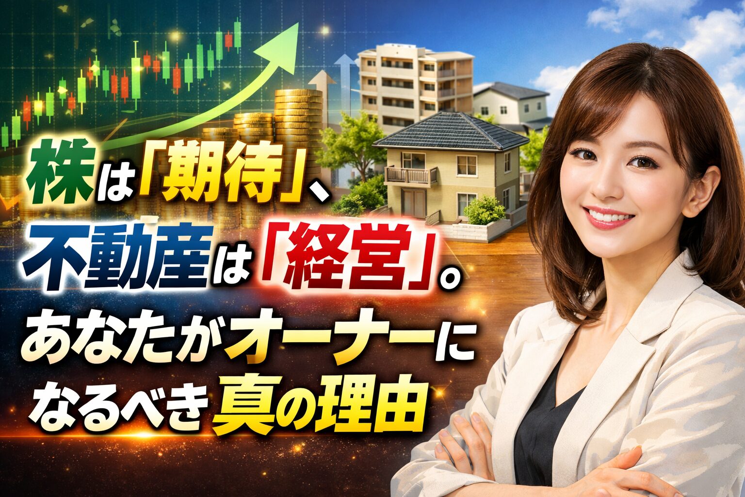 株式投資で「いつか上がる」という期待にすがり続ける人生を選ぶか。 不動産投資で「家賃」という揺るぎない経営基盤を築く人生を選ぶか。