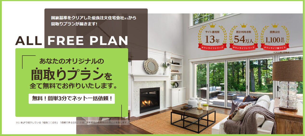 しかし、「タウンライフ家づくり」なら、一度の入力で、あなたの地域で厳選された複数社のプランを一括で取り寄せることができます。